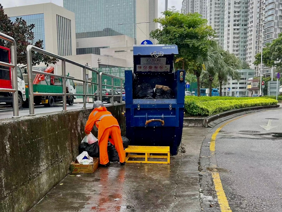 为应对八号风球悬挂期间可能出现的环境卫生状况,市政署协调澳门清洁专营有限公司于安全情况下派员加强清理市面垃圾。