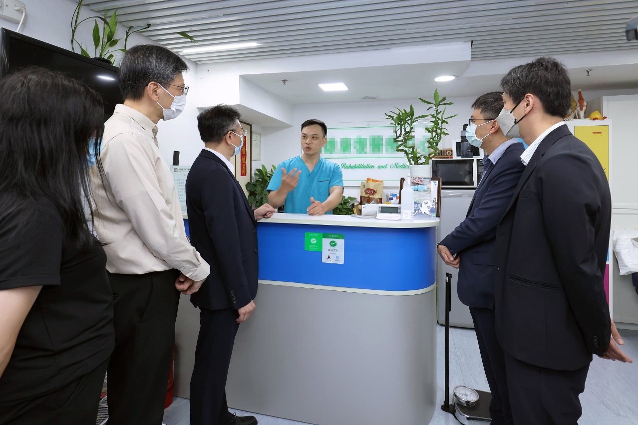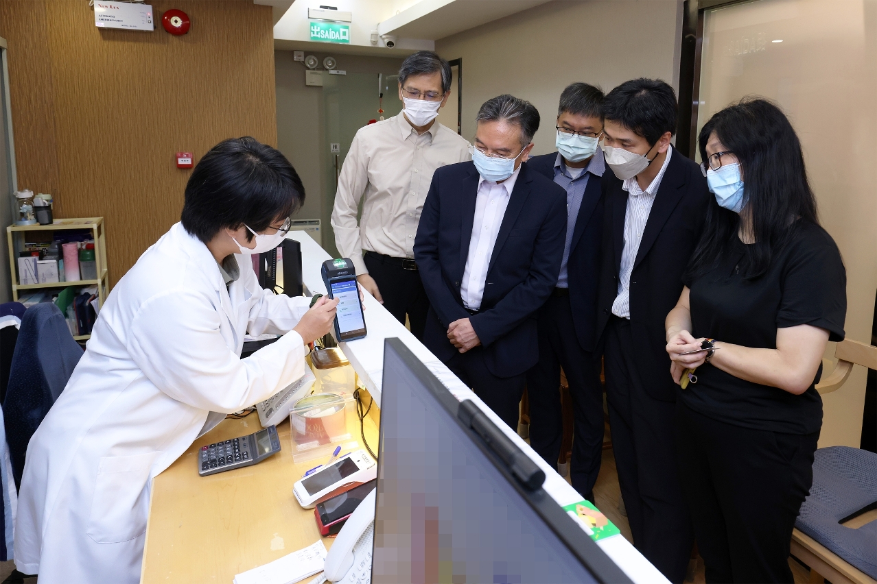 “医疗补贴计划优化使用方案"今(1)日起正式实施,卫生局陈永华副局长、资讯科技厅梁基雄厅长、医疗券计划工作协调小组冼钧沛协调员,行政公职局电子政务厅陈子健厅长及身份证明局研究开发处吴俊峰处长等,上午到加入医疗补贴计划的医疗人员驻诊场所了解首日运作情况,并听取了医生及求诊者的意见。
