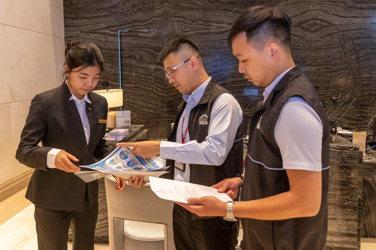 旅游局已通知业界注意相关事宜及呼吁制定合理的应对预案,其中,特别通知全澳酒店业场所于大堂或当眼位置展示澳门实时悬挂的热带气旋信号,以及台风期间澳门的交通措施安排,以便旅客适时调整行程,尽量减低台风对旅客的影响;同时,旅游局亦有到酒店业场所了解相关准备工作的执行情况。