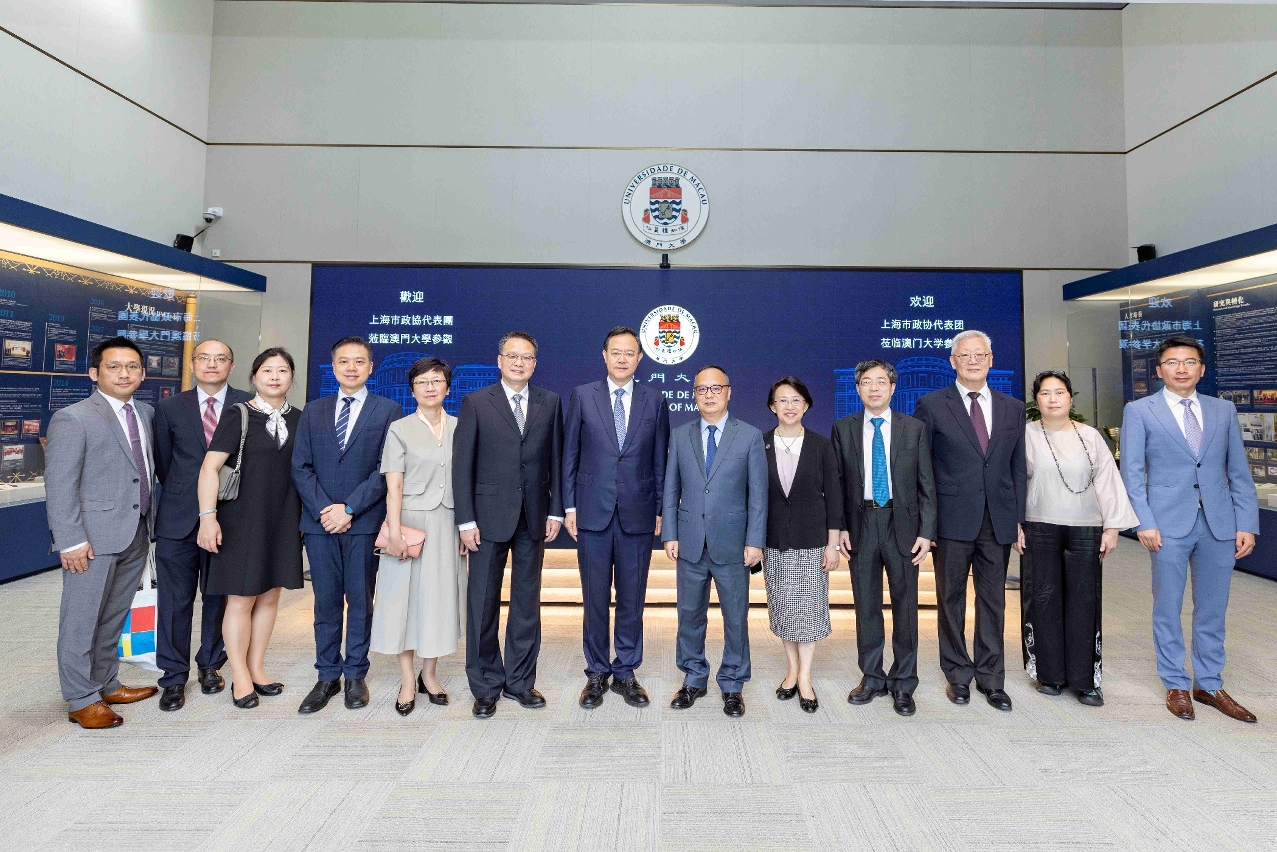 上海市政协副主席张恩迪率团访问澳门大学,了解澳大的发展及科教成果,获澳大校长宋永华、副校长徐建等热情接待。
