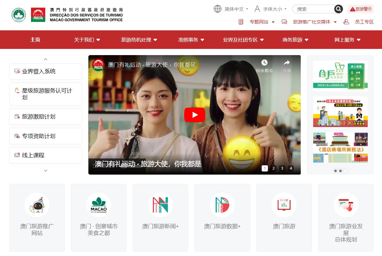 全新旅游局网站继承原澳门旅游业界网站功能,保留原有的服务项目,如准照事务、业界及社团专区、旅游危机处理、商务旅游和网上服务等,为居民和业界继续提供固有服务功能以及查询相关资讯。