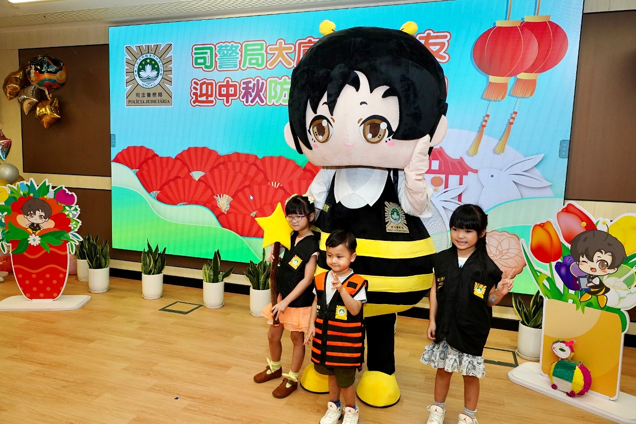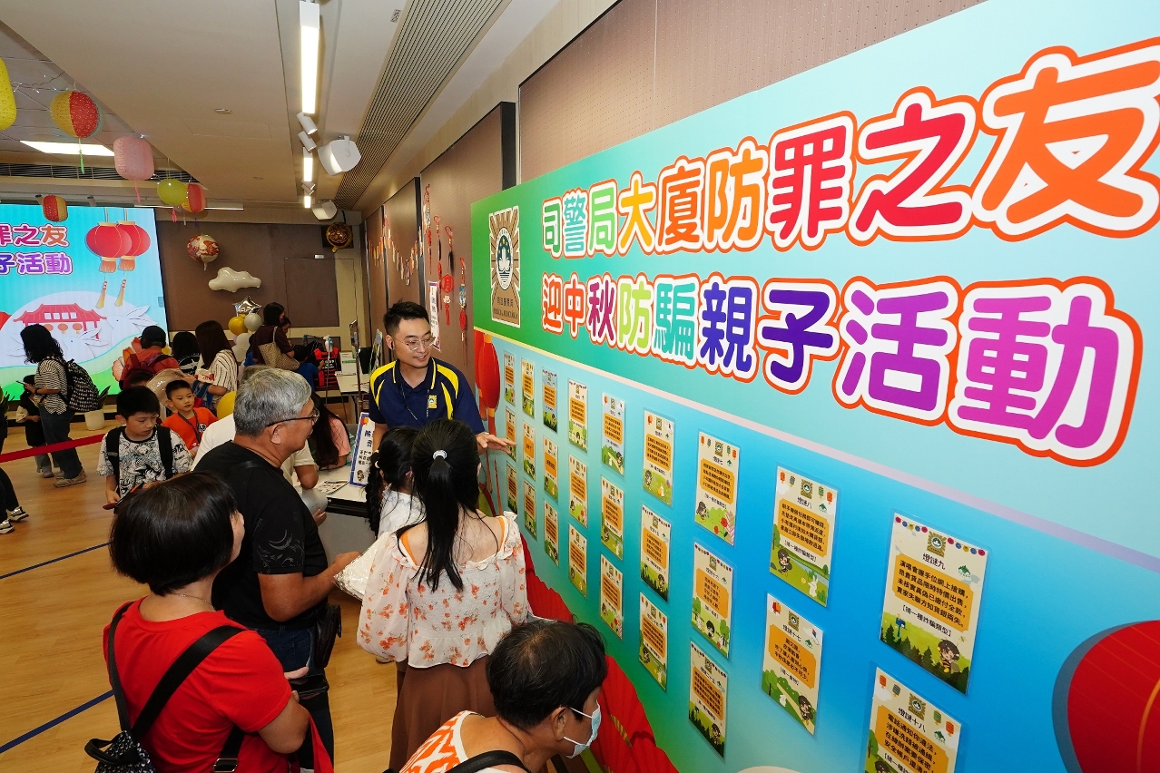 “迎中秋防骗亲子活动”于9月23日在司法警察学校举行,近300名来自澳门街坊会联合总会、澳门工会联合总会、澳门妇女联合总会、澳门归侨总会、民众建澳联盟、澳门物业管理业商会、澳门不动产管理专业技术人员协会及澳门物业管理专业人员协会的司警局大厦防罪之友成员及其亲属欢庆共聚;司警局组织两项青年计划学员及上述社团的大厦防罪之友成员义工协助是次活动接待工作。