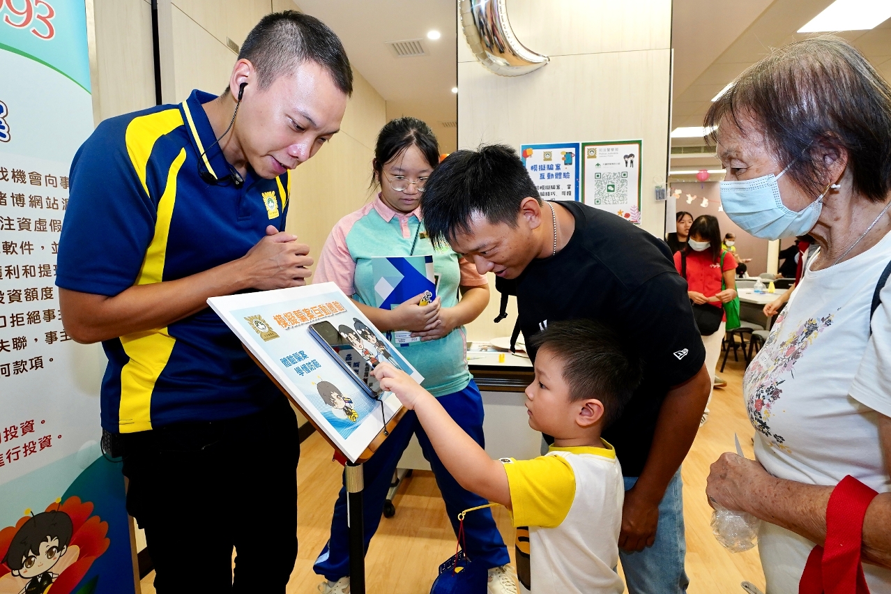 活动现场设置“防骗知识大比拼”、“亲子制作防罪灯笼”等互动游戏,透过亲子参与形式,既能增进和谐家庭关系,又能让他们认识最新诈骗手法和防骗方法;另外,还设有防骗展板介绍各种防骗资讯,“防骗小精灵”也亲临现场与各成员和亲属们拍照互动,场面欢乐热闹。司警局冀藉着是次活动,让大厦防罪之友成员及其亲属在轻松愉快的气氛下瞭解和牢记防骗资讯,强化防骗观念,并在中秋佳节家庭团聚时与家人、朋友分享,一起协助警方将防骗资讯于社区广为传播,提升全民防骗意识和能力。