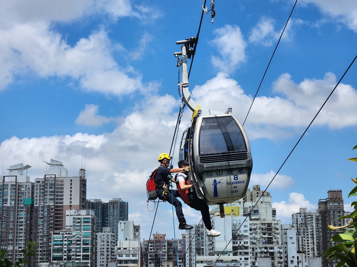 为加强松山缆车发生事故时的紧急应变协作能力,于9月25日,消防局联同市政署进行松山缆车事故拯救演习。