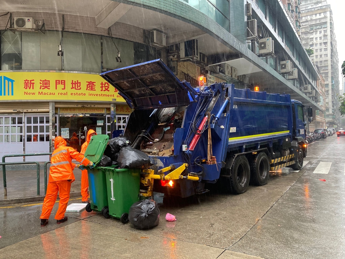为应对八号风球悬挂期间可能出现的环境卫生状况,市政署协调澳门清洁专营有限公司于安全情况下派员加强清理市面垃圾,以减少垃圾堆积情况。在八号风球除下后,市政署稽查人员亦加强巡查街道垃圾收集设施,协调澳门清洁专营有限公司调度所有人力及车辆,增加垃圾车至35辆,以加快清理风后各区垃圾。市政署呼吁市民应优先处理容易腐烂的生活垃圾,以配合垃圾清运工作。