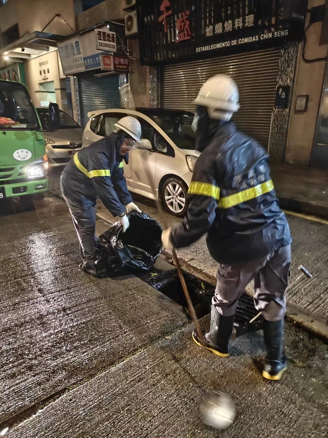 台风期间,市政署持续检查及清理渠道、疏通雨水井、监察泵房运作,确保尽快排走积水,舒缓水浸,减少对市民生活的影响,并派员清理倒塌的树木断枝,以免阻碍交通。风暴过后,立即派员巡查辖下绿化设施,加快清理市面垃圾。