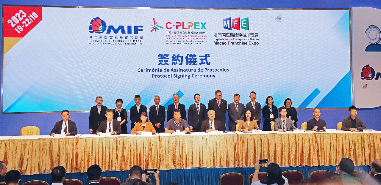 合约签署仪式于本月廿日在第二十八届澳门国际贸易投资展览会(MIF)期间举行,由澳门旅游学院院长黄竹君、澳门森歌数据技术有限公司董事长兼总经理庄子君代表双方签署。