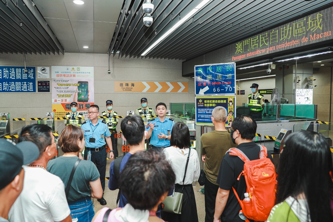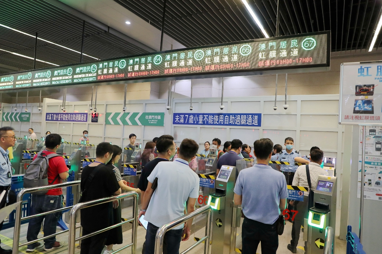 治安警察局积极发展智慧警务,不断推动口岸通关便利化,为提升通关体验,治安警察局在澳门保安部队事务局的协助下于本年第二季在关闸口岸装设10条“虹膜自助通道”,分别设于离境大堂及入境大堂各5条。