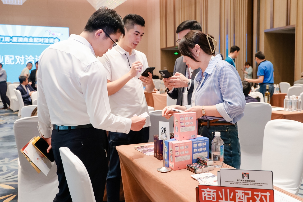 由澳门贸易投资促进局、厦门市商务局合办的“厦澳商业配对洽谈会”今(26)日,在“福建‧厦门澳门周”举办之际举行。逾190位闽澳企业代表出席。30家澳门企业机构和80多家福建企业进行逾150场商务洽谈,范畴涵盖大健康、贸易批发、电子商务、餐饮及文旅会展等。其中一个澳门啤酒品牌现场与厦门企业签署合作协议,计划将澳门产品引入厦门及周边地区千家餐饮场所和酒店。有澳门饼食及葡萄酒企业找到商机,初步达成采购意向。