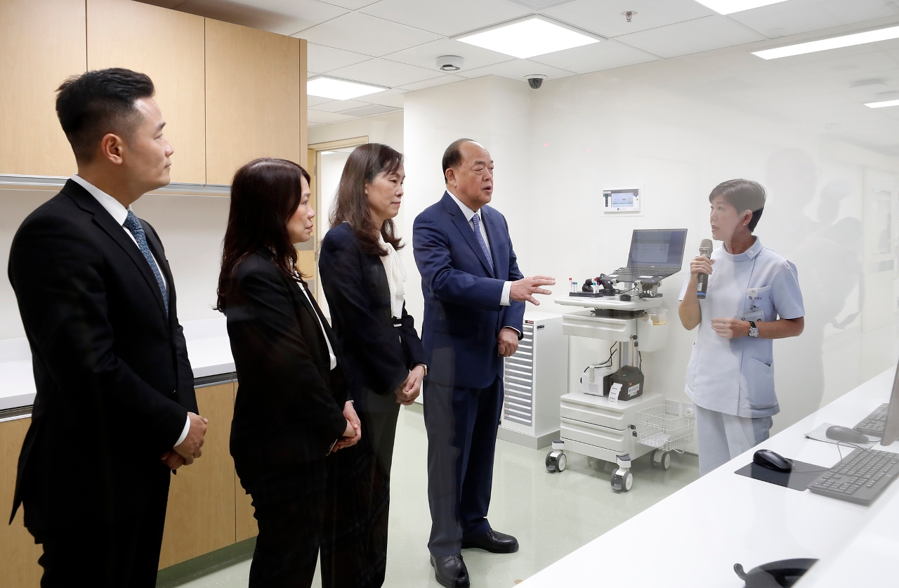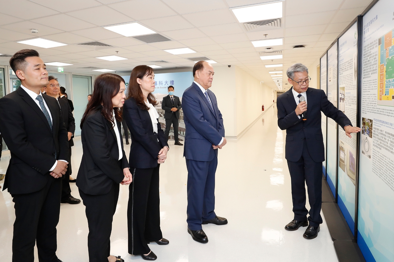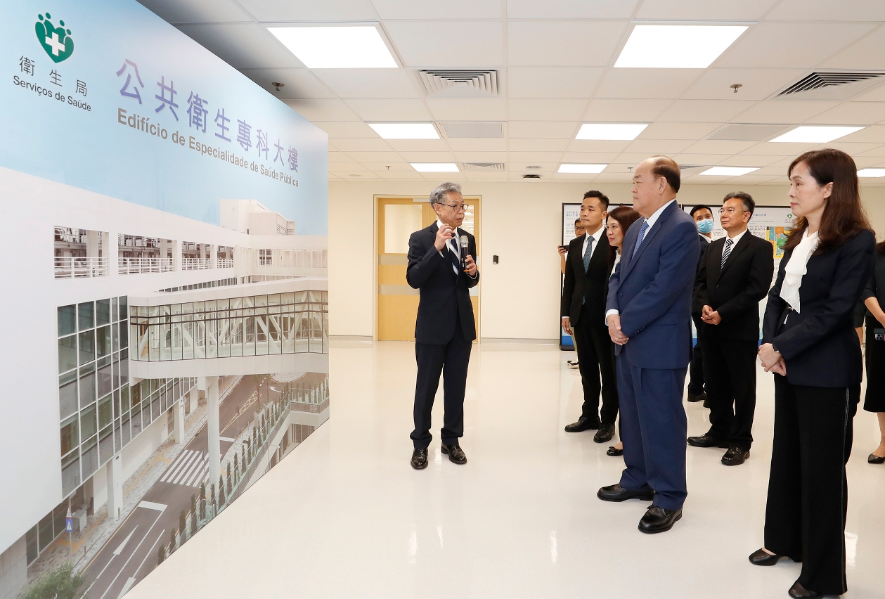 仪式后,行政长官贺一诚在欧阳瑜司长、何钰珊主任和罗奕龙局长等陪同下,参观了公共卫生专科大楼内护士站、病房及保安控制室,期间听取了郭昌宇副局长的讲解。