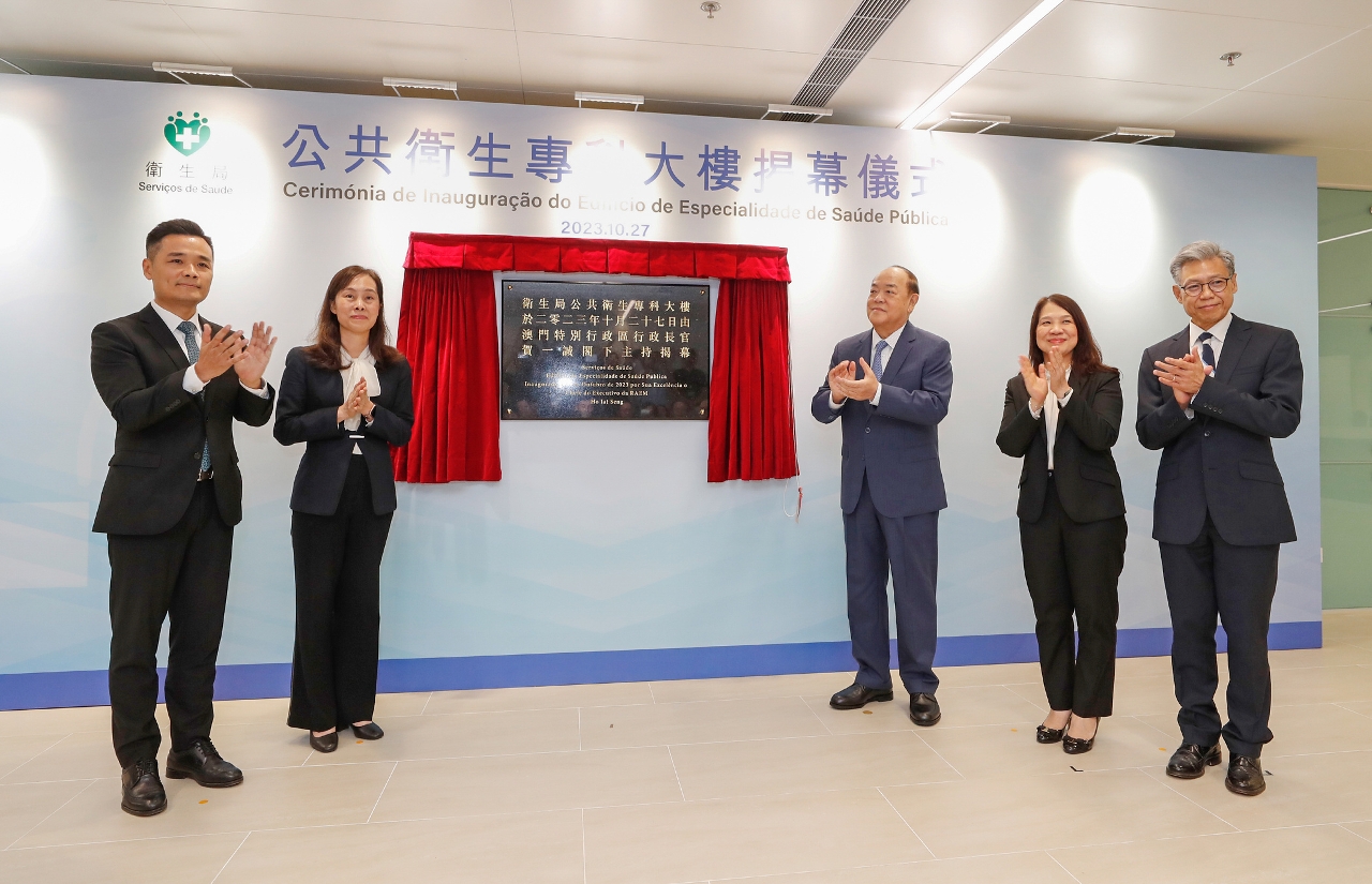 澳门特别行政区行政长官贺一诚今(27)日在社会文化司司长欧阳瑜、司长办公室主任何钰珊、卫生局局长罗奕龙和副局长郭昌宇陪同下,主持了卫生局公共卫生专科大楼的揭幕仪式。