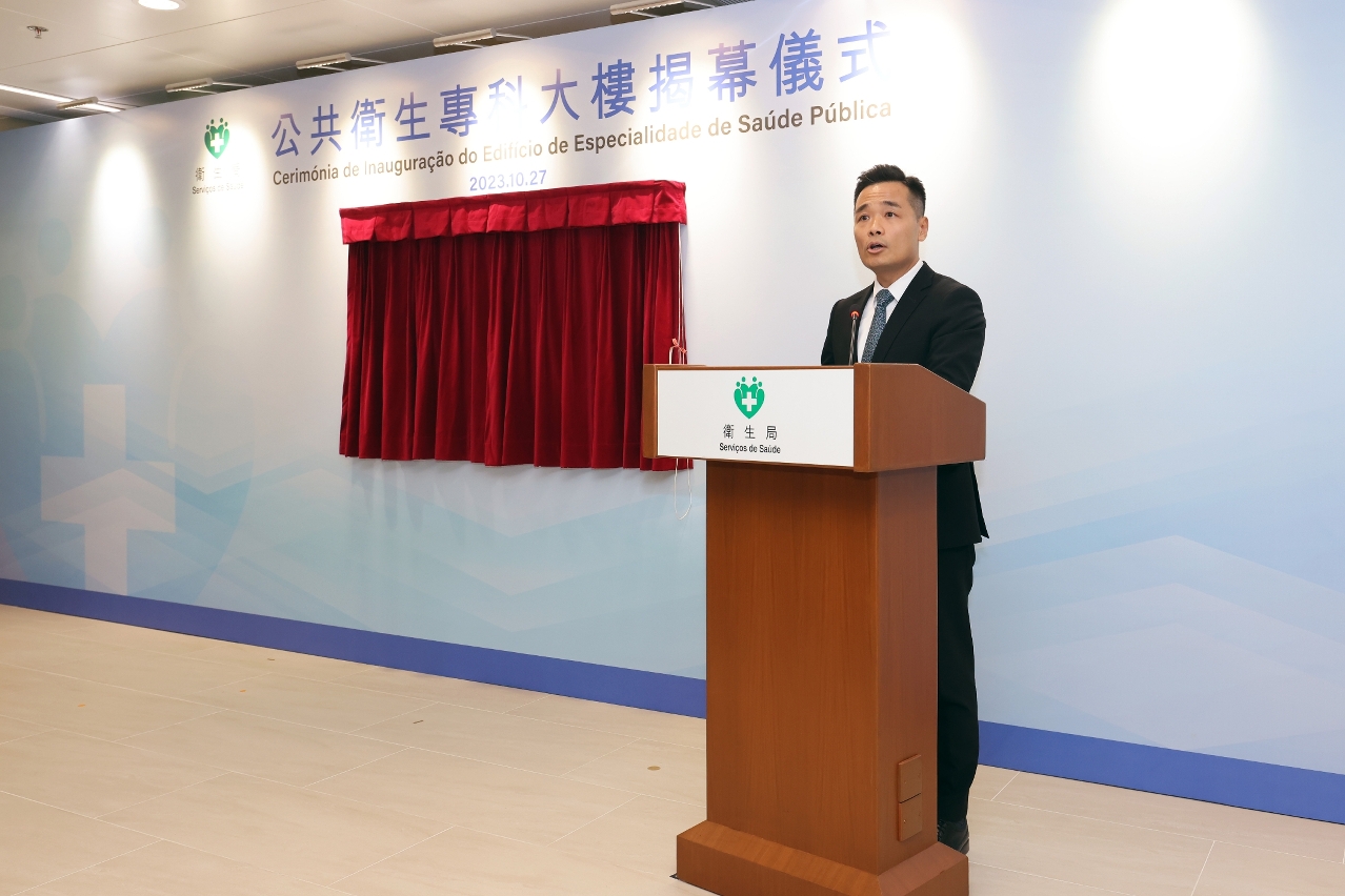 罗奕龙局长致辞时首先感谢行政长官贺一诚主持卫生局公共卫生专科大楼的揭幕仪式,以及社会各界一直以来对澳门医疗卫生事业发展的支持和帮助。他强调,尽管新冠疫情已经告一段落,但全球传染病的威胁仍然存在,要时刻保持高度警惕,不断提升应对各种传染病的能力,包括持续完善传染病相关的法律法规、应急预案、设施建设、物资储备以及人员培训,以应对未来可能出现的传染病挑战。公共卫生专科大楼正式启用,结合高顶公共卫生临床中心现有120张隔离病床,以及可容纳208名工作人员的公共卫生应急人员宿舍,标志着澳门隔离设施的建设迈上新台阶,体现特区政府在保障本澳居民的身体健康及生命安全的决心。