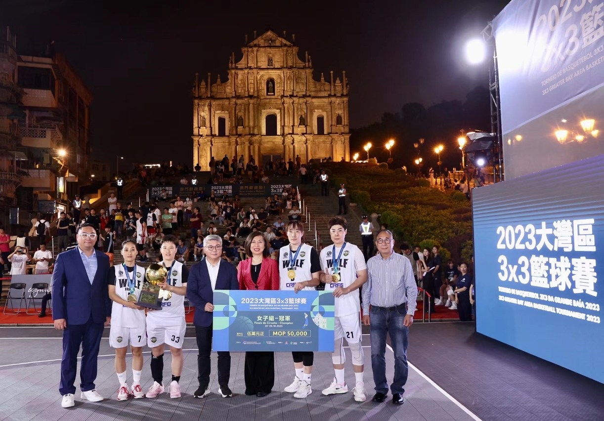 由澳门特别行政区政府体育局及澳门星娱乐制作有限公司主办,中国澳门篮球总会及齐睿体育活动策划有限公司协办,永利渡假村(澳门)股份有限公司赞助的《2023大湾区3x3篮球赛》,今(29)日于大三巴牌坊上演澳门总决赛压轴日赛事,最终由男子组常州MDMX及女子组戎福控股战狼联夺冠。