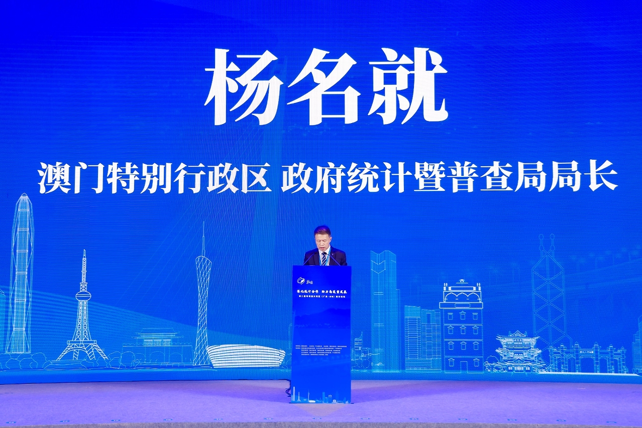 统计暨普查局局长杨名就于致辞时表示,粤港澳大湾区建设是国家重大的区域发展战略,也是澳门进一步融入国家发展大局的重要平台。澳门特区政府积极推动“1+4”经济适度多元发展策略,同时不断深化推进粤港澳大湾区、横琴粤澳深度合作区的建设;相关产业的发展和区域合作为澳门官方统计工作带来挑战,也为统计体系创新迎来机遇,统计暨普查局必定进一步与大湾区同仁携手持续丰富、完善各类数据的共享和发布,以高品质的官方统计助力大湾区的发展贡献力量。