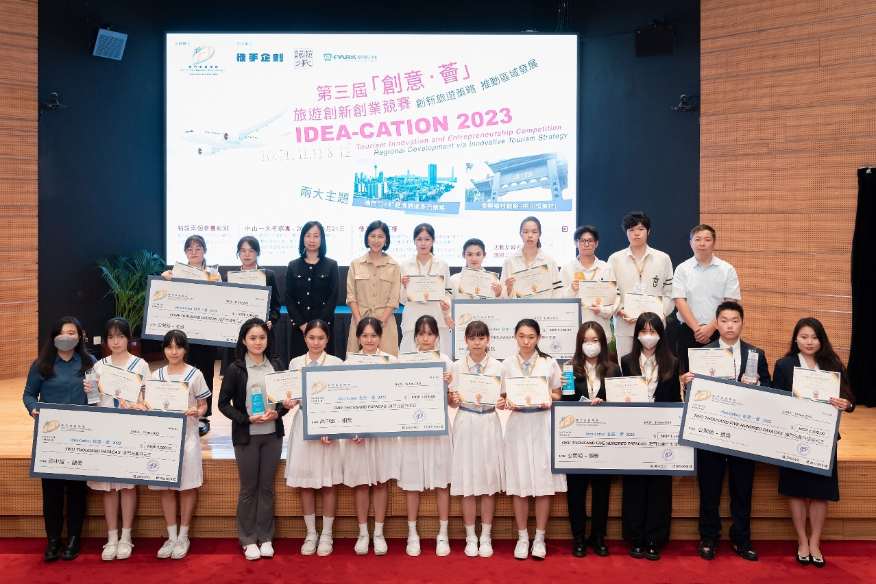 澳门旅游学院“2023创意·荟”旅游创新创业竞赛圆满结束,并于11月12日举行颁奖礼。这项竞赛自2021年起举办,至今已是第三届,参赛队伍为旅游业发展提出创新方案。澳旅院期望藉比赛激发参赛者的创意,推动他们关注社会发展,同时促进本澳的创新创业发展。