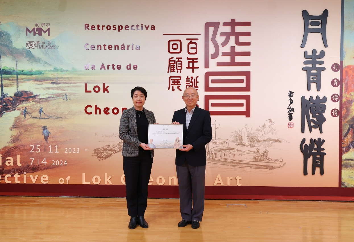 由文化局辖下澳门艺术博物馆主办,澳门美术协会协办之“丹青传情——陆昌百年诞辰回顾展”今日(11月24日)于澳门艺术博物馆三楼开幕,全国政协副主席何厚铧、中央人民政府驻澳门特别行政区联络办公室宣传文化部部长万速成、文化局局长梁惠敏、澳门美术家协会主席黎鹰、澳门颐园书画会会长崔世平、澳门美术协会艺术顾问张耀生及常务副会长邵燕梁等主礼,陆昌家属代表陆波及陆曦陪同剪彩,场面热闹。