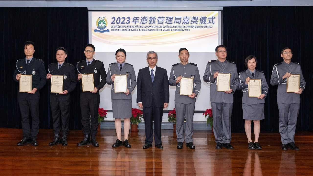 于12月11日上午,惩教管理局假澳门保安部队高等学校礼堂举行2023年度嘉奖仪式,表彰先进、鼓舞士气,同时对本年度的各项工作进行总结。仪式由保安司司长黄少泽主礼,保安司司长办公室主任张玉英出席。