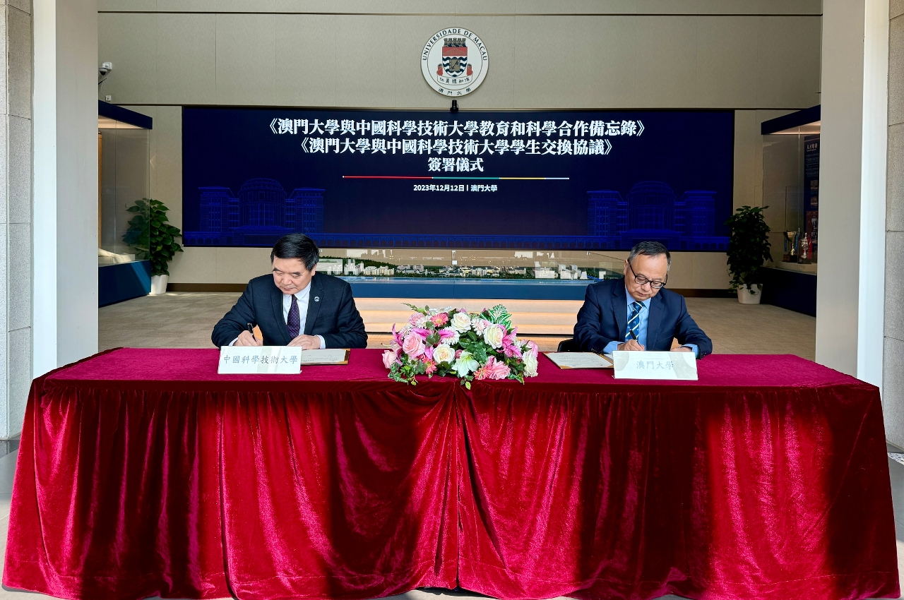 中国科学技术大学校长包信和今(12)日率代表团访澳门大学,获澳大校长宋永华热情接待。访问期间,双方签署《教育和科学合作备忘录》及《学生交换协议》,期望进一步深化两校合作关系,拓展交流项目。