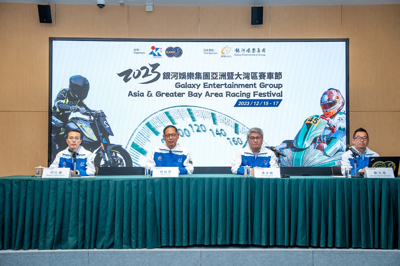 「2023银河娱乐集团亚洲暨大湾区赛车节」由体育局、中国-澳门汽车总会主办,银河娱乐集团冠名赞助,本年12月15日至17日(本周五至周日),在路环小型赛车场举行,赛车节设有小型赛车及电单车赛,共七项赛事,其中小型赛车组别设三项比赛,包括:ROK GP少年组、KZ组及X30 成人125组;而电单车组别设四项赛事,包括:迷你电单车组、150-190 cc组、250cc组及大湾区电单车赛(150cc),参赛车手分别来自内地、新加坡、菲律宾、中华台北、香港及澳门。赛事分三日进行, 15日为练习日、16日及17日是比赛日。活动免费入场,欢迎市民及旅客到场参观,现场感受赛车运动的魅力。