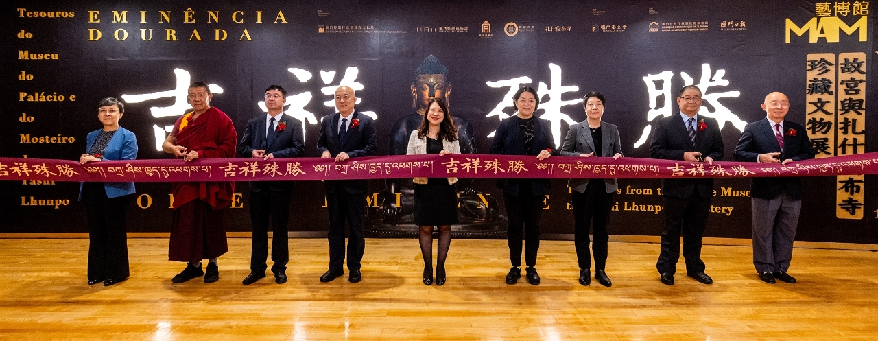“吉祥殊胜——故宫与扎什伦布寺珍藏文物展”今日(12月15日)于澳门艺术博物馆四楼专题展厅隆重揭幕,由澳门特别行政区政府社会文化司司长代表、社会文化司司长办公室主任何钰珊,故宫博物院院长王旭东,中央人民政府驻澳门特别行政区联络办公室副主任严植婵,西藏自治区文物局党组书记赵兴邦,文化局局长梁惠敏,扎什伦布寺管理委员会副主任洛桑扎西,澳门基金会行政委员会主席吴志良,旅游局局长文绮华及澳门日报社长陆波主礼。