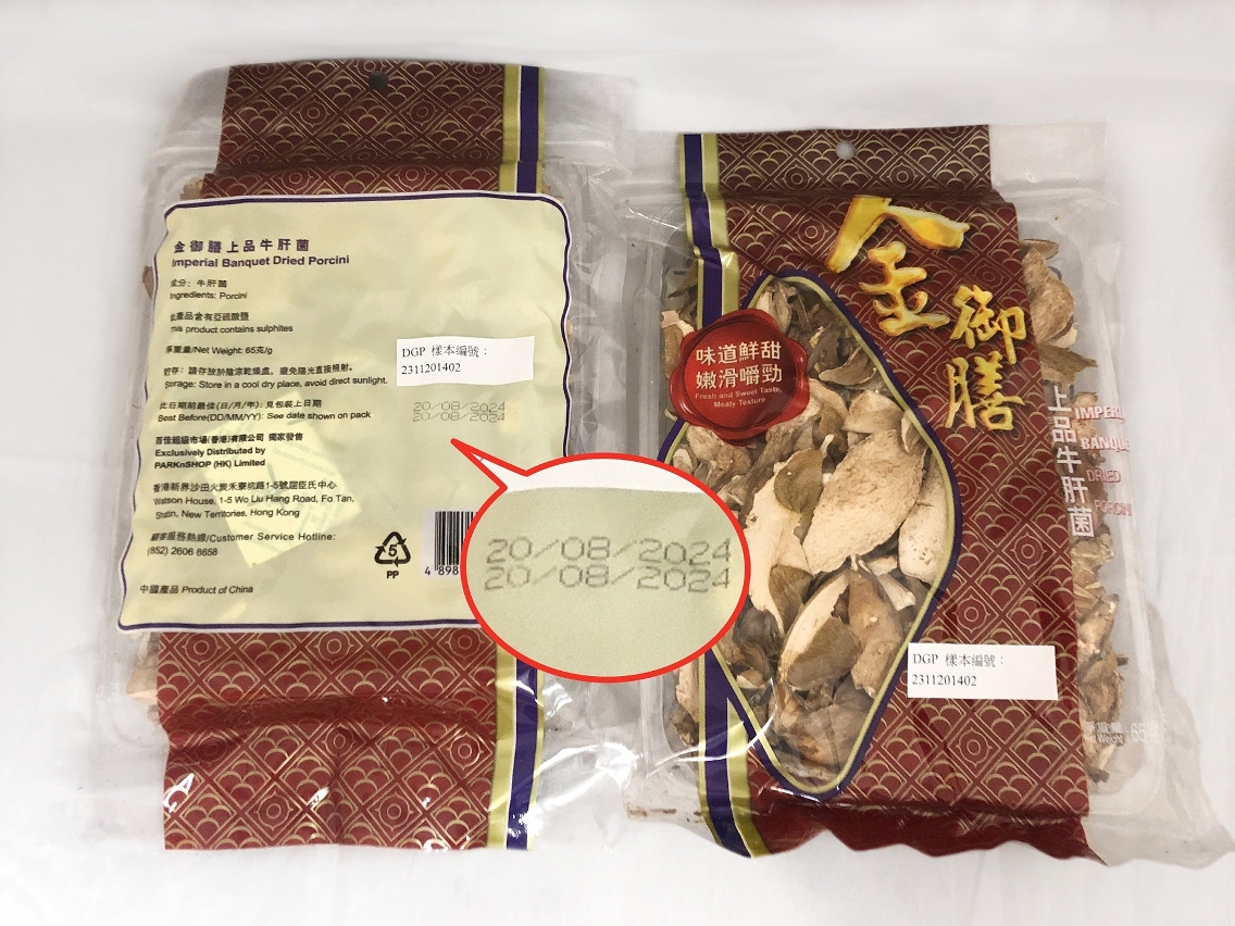 而检出含过量重金属汞的预包装干制牛肝菌,产品名称为“上品牛肝菌”,品牌名称为“金御膳”,净重为65克,包装上显示之“此日期前最佳”为2024年8月20日,检出重金属总汞含量经干制食物的转换系数折算后为每公斤0.184毫克。