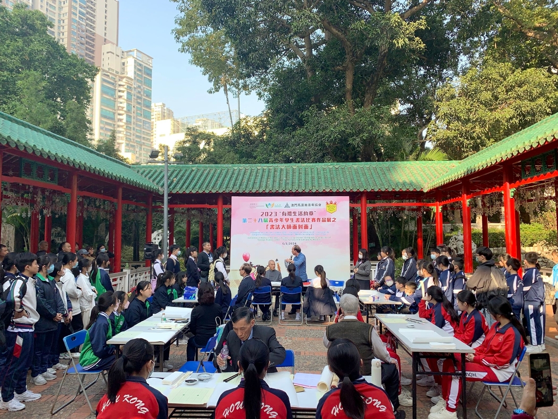 此外,主办单位首次于开幕式前在卢廉若公园百步廊举行“书法大师面对面”活动,邀请本澳书法家莫华基、欧耀南、陈步鹏、何丽婵、苏祥基及谭玉明,与书法爱好者和学生分享书法的书写技巧及其所传承的价值理念,甚受欢迎。
