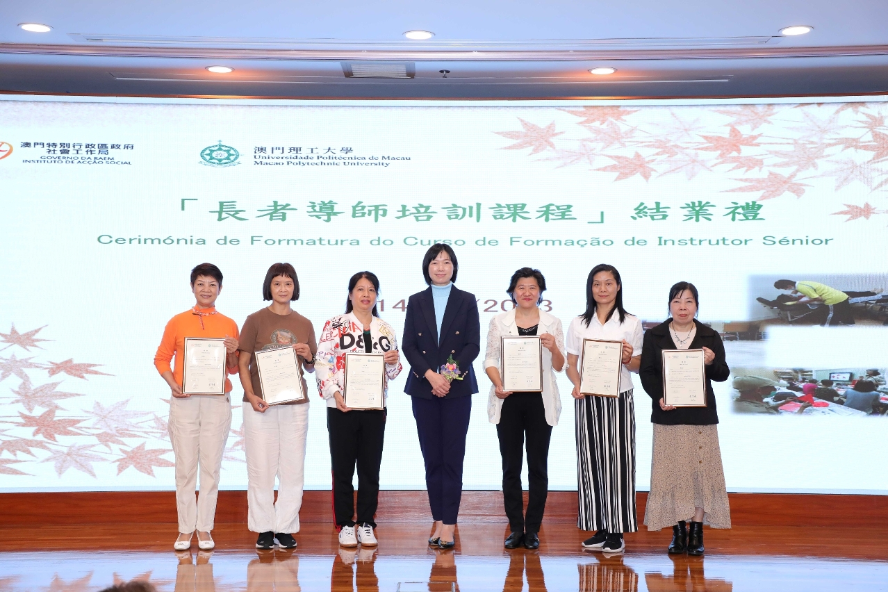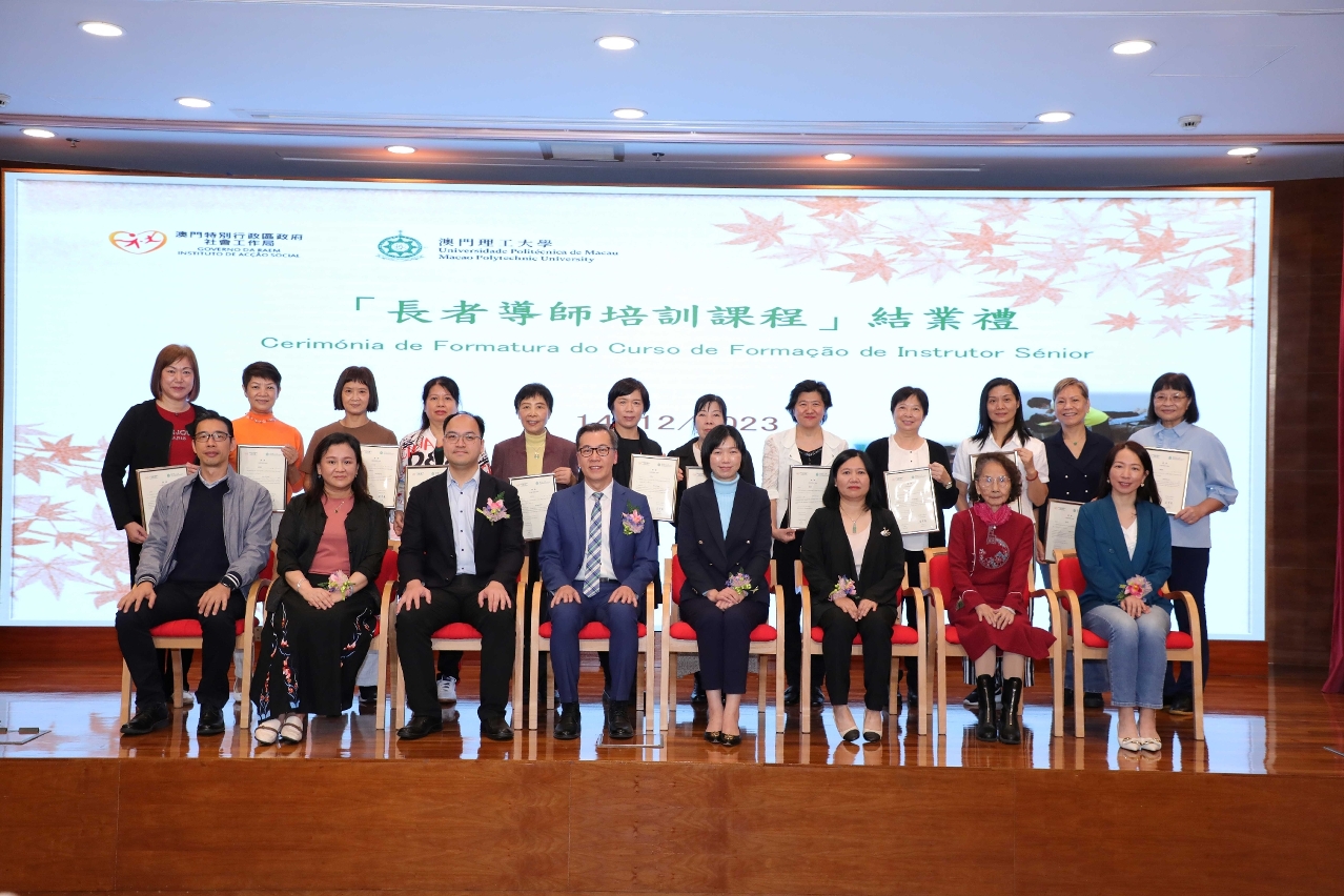 由社会工作局与澳门理工大学长者书院合办的第四届「长者导师培训课程」于2023年12 月14 日在澳门理工大学举行了结业礼,共有 12 名学员获发结业证书。