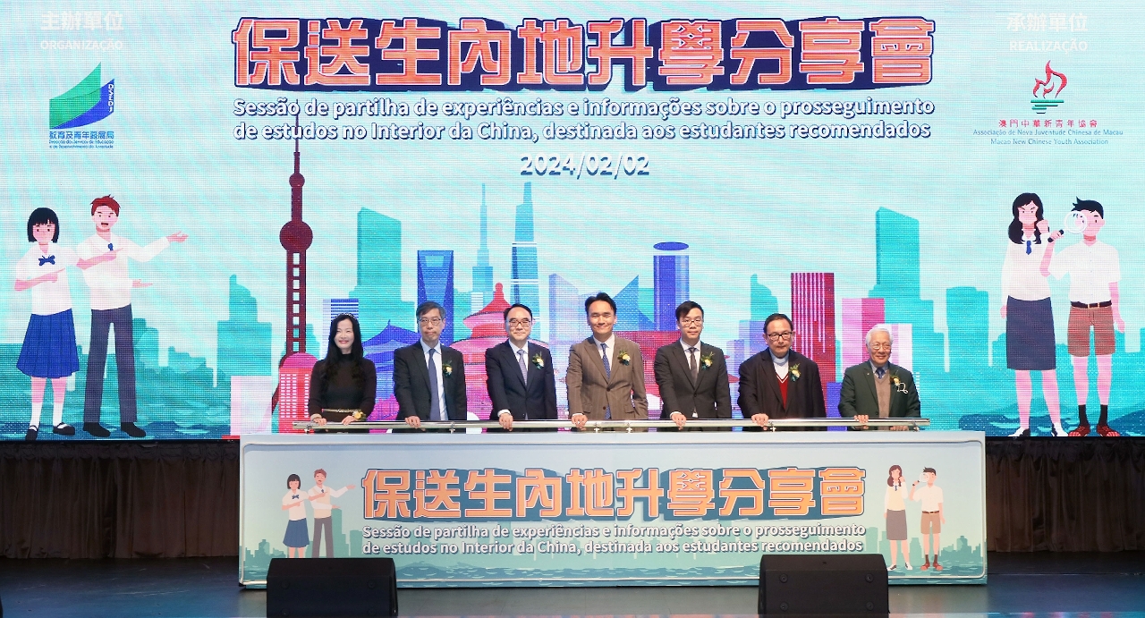 龚志明局长致辞时表示,国家一直大力支持澳门特区的发展,关心澳门年青一代的成长,为让更多澳门学生可以前往内地着名的高等院校升学,国家教育部连续多年扩大澳门学生保送的高等院校数量及保送生名额,2024年内地高等院校提供的保送名额,以及学生报考人数均创历年新高。寄望同学们把握前往内地升学的机会,在努力学习的同时,增加对国家的认识,捉紧国家和粤港澳大湾区的发展机遇,融入国家发展大局,回馈国家和澳门。