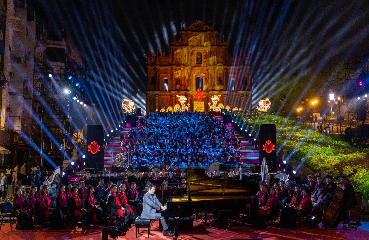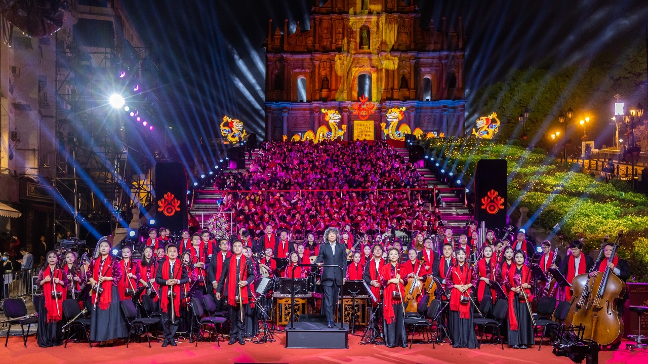 同场举行了“欢乐春节 春满濠江”音乐会,邀请到我国顶尖音乐家,包括斐声国际的作曲及指挥家谭盾、国家一级指挥彭家鹏及钢琴大师郎朗,携手澳门乐团第一小提琴首席后则周、澳门中乐团琵琶声部首席邓乐、敲击乐首席李畅,澳门中乐团、澳门少年合唱团、澳门罗梁体育总会等本澳艺文单位,在大三巴牌坊下呈献节日气氛浓厚的音乐作品,为全球民众送上新春祝福。节目将于新春期间在文化和旅游部的官方平台及合作渠道中播放,欢迎届时收看。