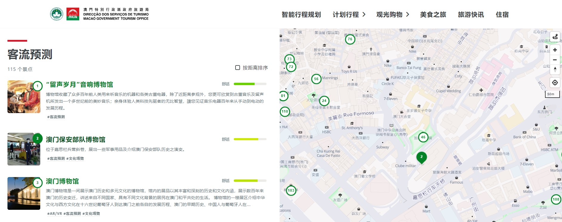 旅游局鼓励旅客透过专属网站 (https://poimonitor.macaotourism.gov.mo) 使用“智慧客流应用”,查看115个景点人流状况供旅客参考,以助错峰出行。旅客亦可使用治安警察局“出入境事务站实时资讯平台”(https://www.fsm.gov.mo/psp/pspmonitor),查看各口岸的实时通关视频,选择合适的出入境时间。