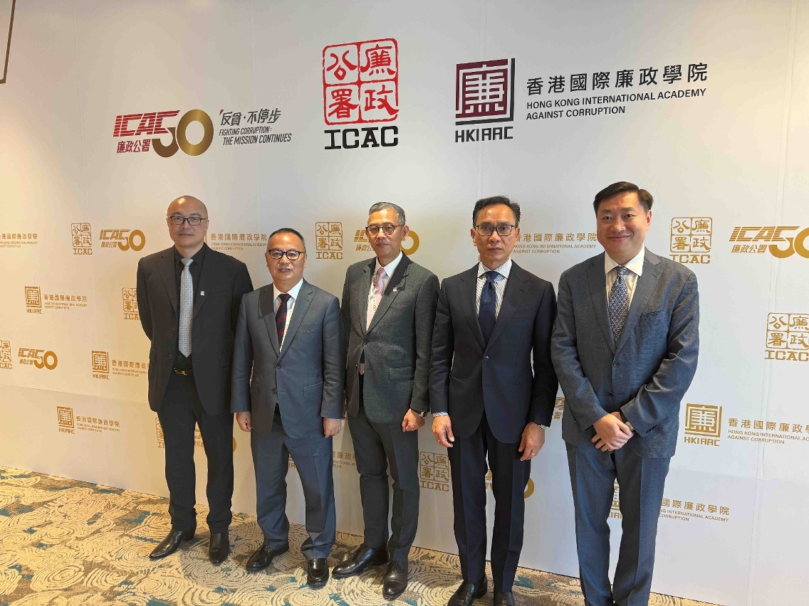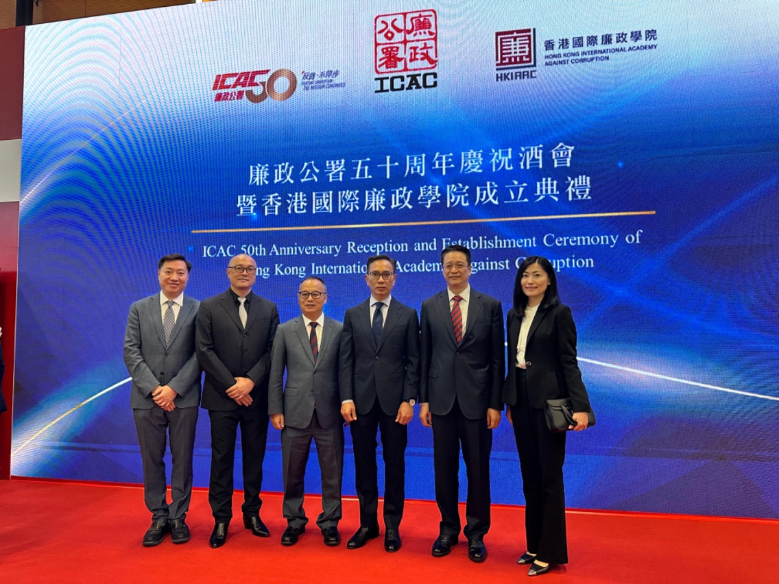 香港廉政公署举行廉政公署成立50 周年庆祝酒会暨香港国际廉政学院成立典礼。香港特别行政区行政长官李家超、廉政专员胡英明,联同中央人民政府驻香港特别行政区联络办公室副主任罗永纲、中华人民共和国外交部驻香港特别行政区特派员公署副特派员方建明、中华人民共和国中央人民政府驻香港特别行政区维护国家安全公署联络局局长邓建伟、中国人民解放军驻香港部队副政治委员王兆兵少将、副廉政专员兼执行处首长丘树春及贪污问题咨询委员会主席廖长江主持香港国际廉政学院揭牌仪式。