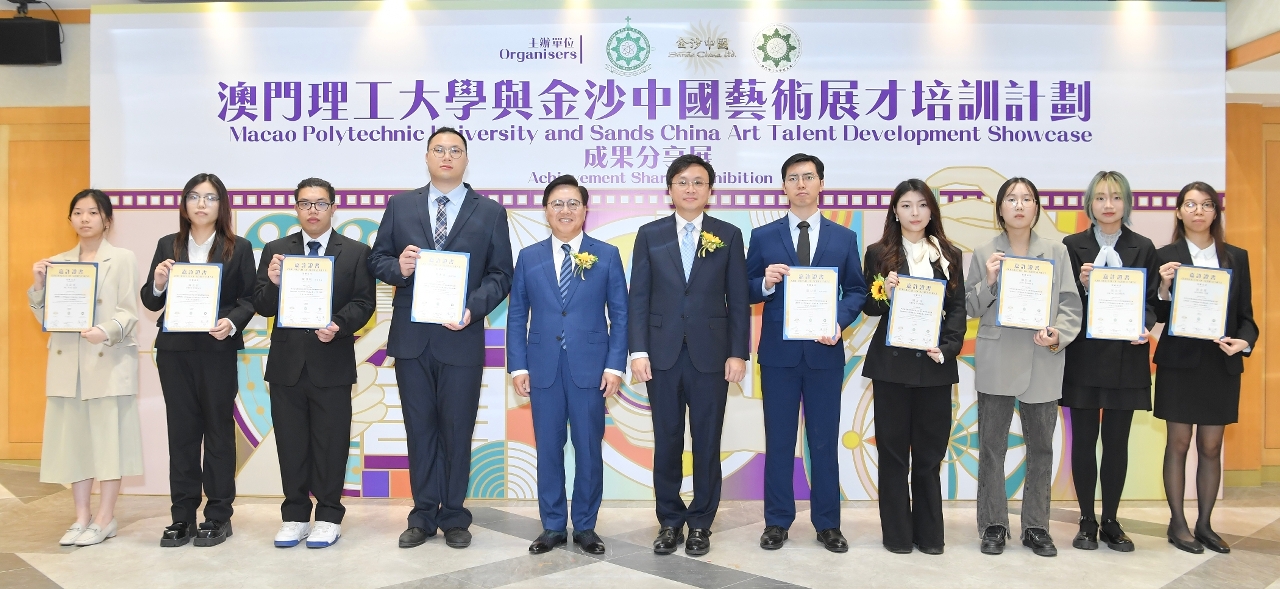 为配合澳门青年政策、助力澳门“1+4”经济适度多元发展,澳门理工大学、金沙中国及澳门理工大学校友会联合举办的“艺术展才培训计划”在澳门理工大学举行成果分享展,展示学生创作成果,反应热烈。澳门理工大学校长严肇基、金沙中国有限公司行政副主席王英伟、澳门理工大学校友会理事长黄宇棋等出席活动并向参与计划的学生颁发证书。