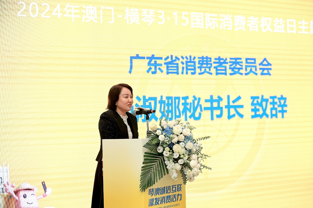 横琴粤澳深度合作区执行委员会副主任苏昆致辞时表示,在深合区正式封关运行的新形势下,为打造适应粤澳合作模式的全新消费生态,提出全面提升消协服务能力,促进消费环境优化;打通琴澳深度融合通道,建立全新诚信机制;促进释放消费升级潜能,助力消费者高品质消费三点建议,作为今(2024)年区内消费维权重中之重的工作。