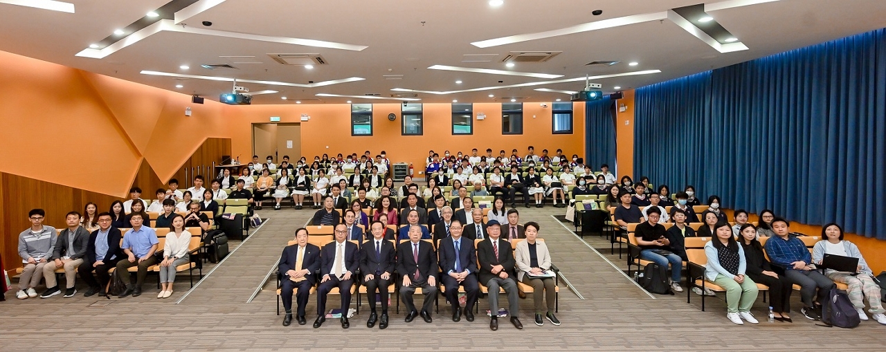 香港大学饶宗颐学术馆馆长李焯芬教授对澳门、香港师生致鼓励词。他介绍饶教授2006年亲身到黑沙考古现场,89岁的高龄依然很热心地关注和指导考古工作,对澳门故事的新发现非常雀跃。除了学术研究,艺术方面饶教授亦多次在澳门举办个人展览,从澳门文化中心、澳门艺术博物馆到饶宗颐学艺馆,饶教授的山水画、荷花画都有澳门的影子与故事。