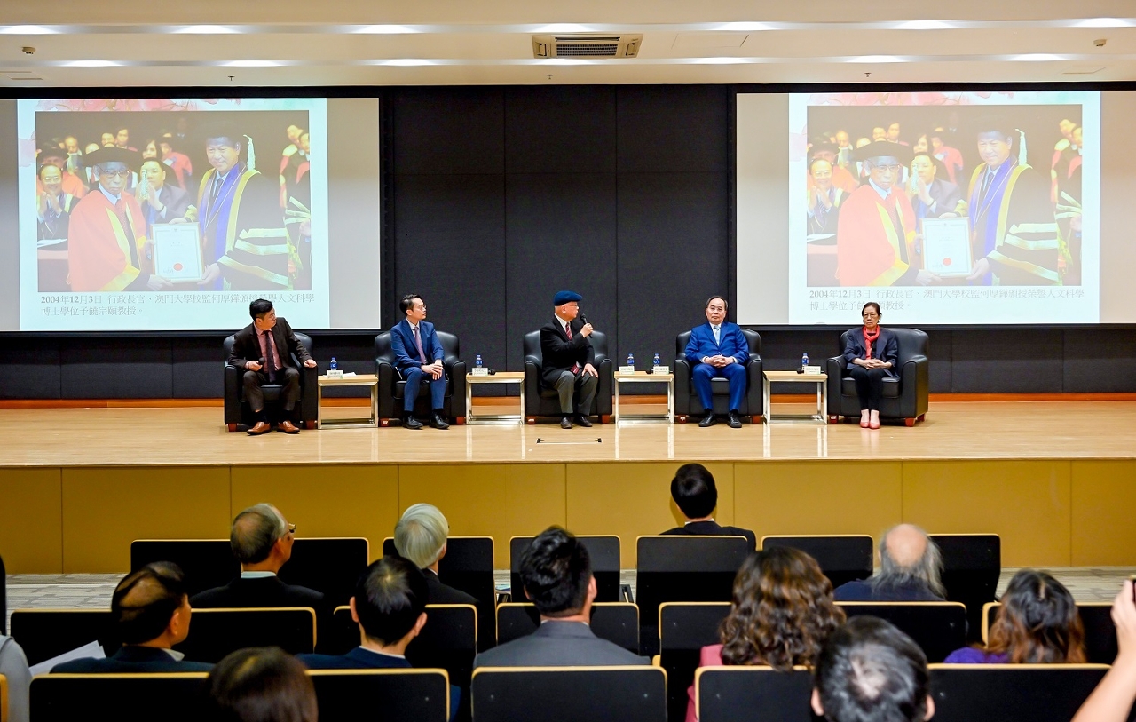 澳大校长宋永华致欢迎辞时表示,饶教授曾在澳大前身东亚大学时期出任文学院讲座教授,并协助研究院创办中国文史学部,亲任该学部主任,为中文系的创系教授,奠定了澳大中文学科扎实的学术和研究基础,更为澳门培养了一批造诣精湛的汉语言文学研究人才,影响深远。多年来,饶教授一直关注和支持澳大的学术和研究发展。澳大在人文学术领域能够取得今天的卓越成绩,有赖饶教授的耕耘播种和长期的悉心指导。是次分享会能够在这校园举行,实感荣幸。
