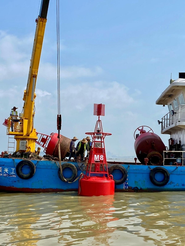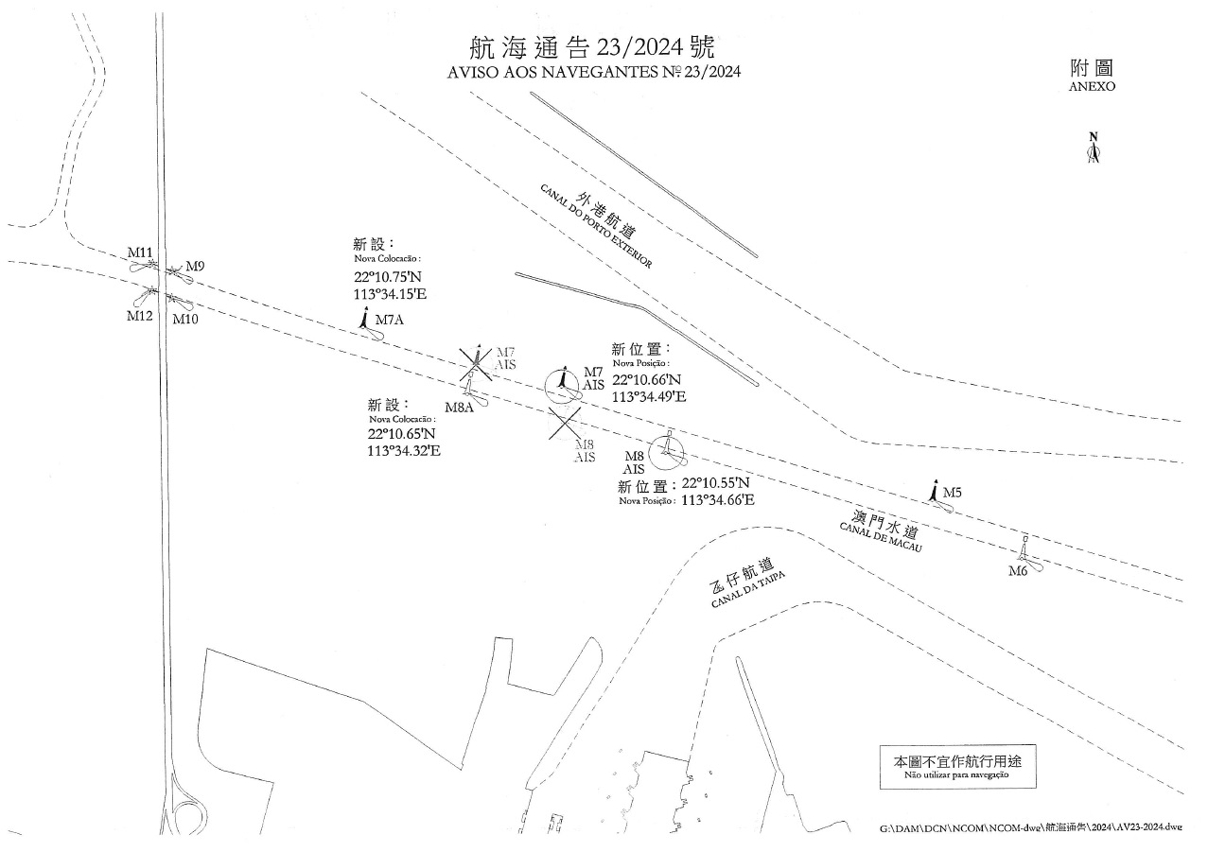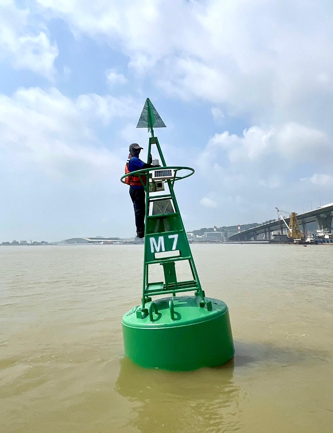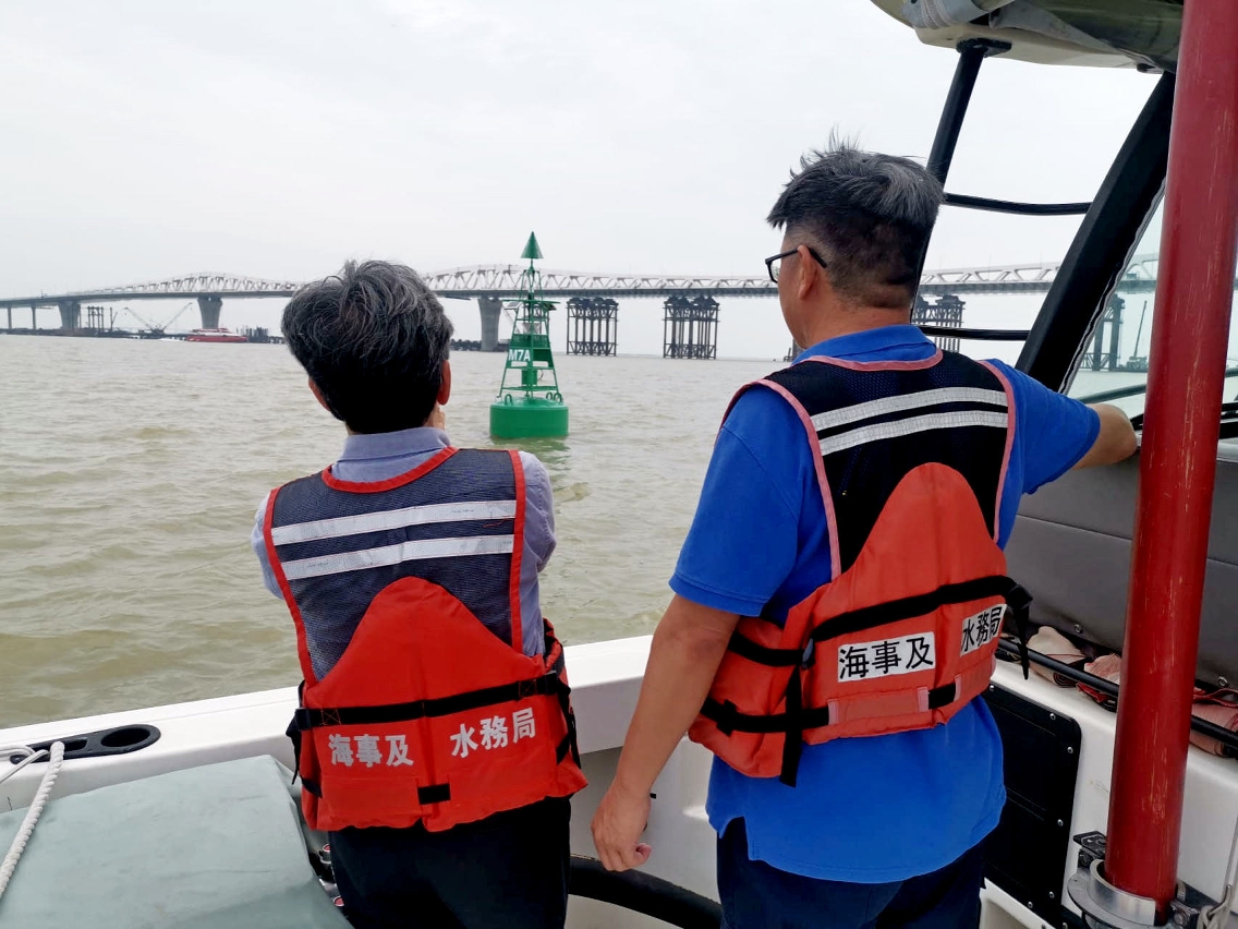 因应澳门大桥即将投入使用,海事及水务局向海上工程业界重点讲解了澳门大桥周边的通航情况,并通知业界海事及水务局优化了澳门大桥周边的航标设置,于澳门水道澳门大桥桥孔周边增设了M7A、M8A号航标,以及移动了部分航标的位置,也将会在澳门大桥氹仔端附近的海上工程区域周边,新增临时警示浮标,以让海事业界清晰相关情况。