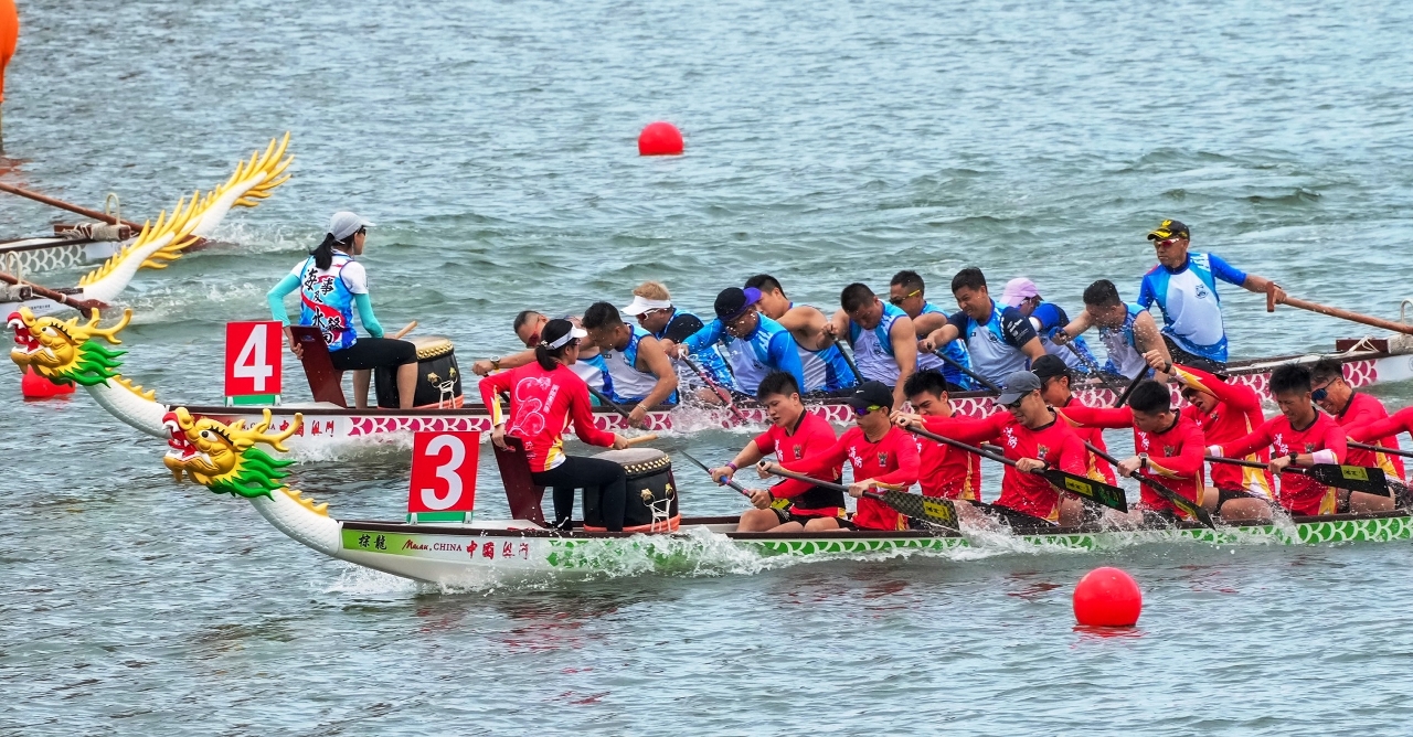 由体育局、澳娱综合度假股份有限公司及中国澳门龙舟总会主办,市政署及行政公职局协办的“庆祝澳门特别行政区成立25周年—2024澳娱综合澳门国际龙舟赛”,今(8)日在南湾湖水上活动中心举行首日赛事,公开组赛事,经一轮角逐后,消防局夺得澳门小龙赛公开组(200米)冠军,而女子组后冠则由澳门青少年发展协会-A夺得。明(9)日将举行澳门龙舟赛标准龙(500米)公开组及女子组赛事。