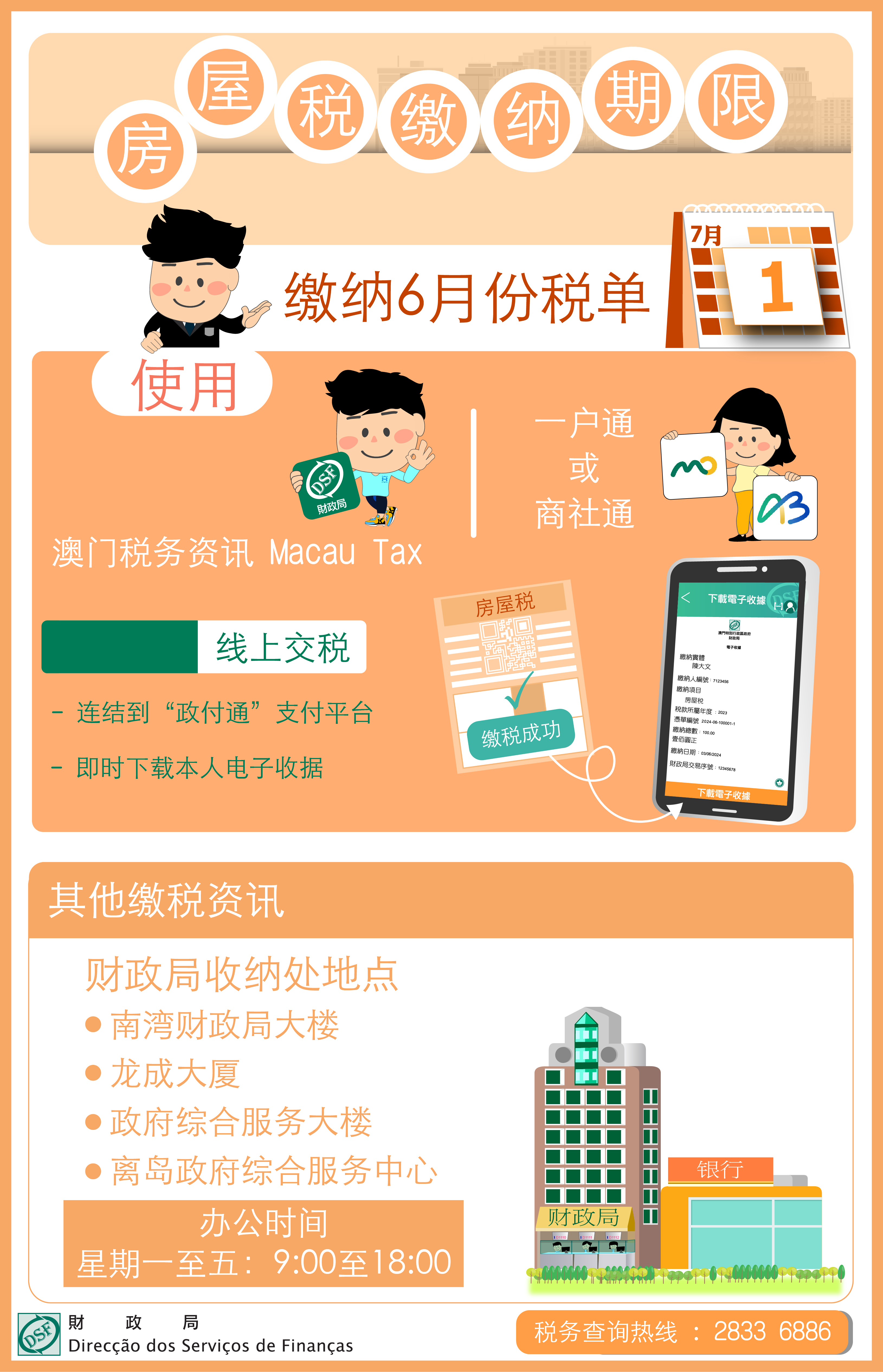 财政局提醒房屋税纳税人,2023年度房屋税征税凭单上缴纳月份属6月的房屋税,缴纳期限至7月1日届满,仍未缴纳上述房屋税的纳税人应尽快缴纳,避免因逾期缴纳而须附加过期利息和罚款。