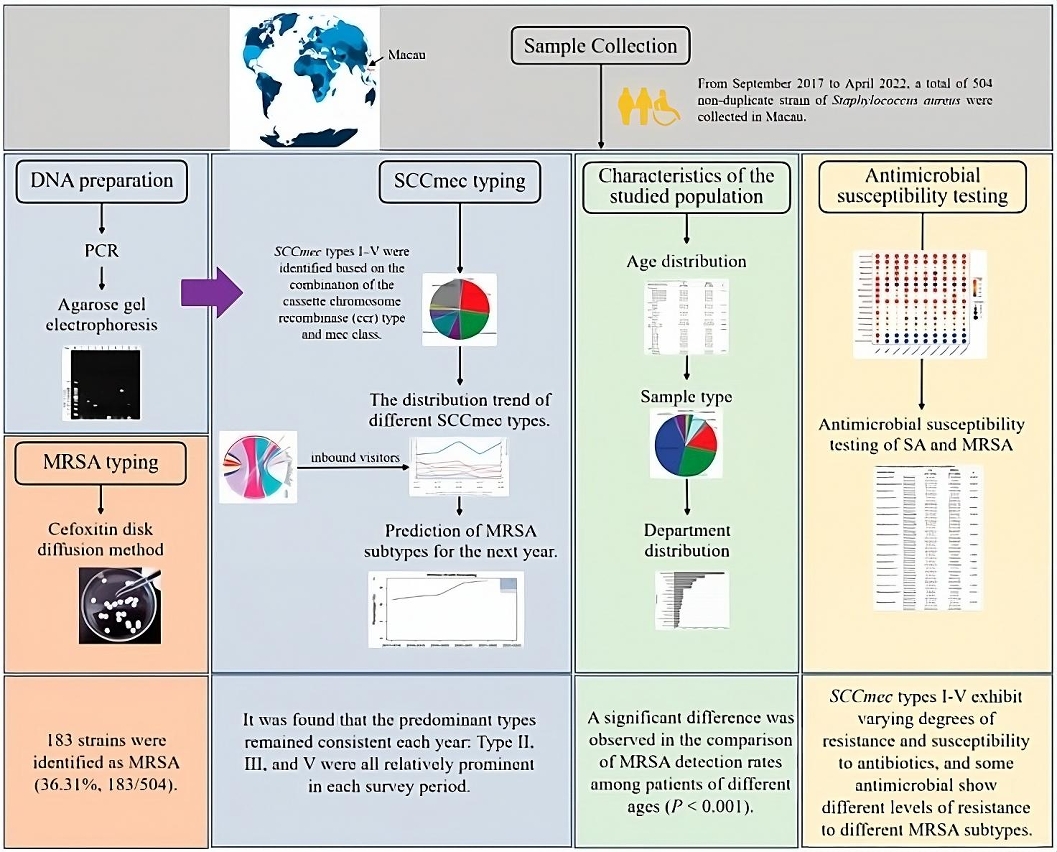 本研究是针对澳门的专项研究,对澳门临床环境中MRSA的独特性进行调查,从宏观及微观的角度评估了本地之MRSA特征。通过运用多种基因、微生物手段,结合人工智能算法,分析MRSA独特的耐药性和流行病学模式。硏究结果为应对MRSA传播及治疗策略提供量身定做的预防措施及科学依据。