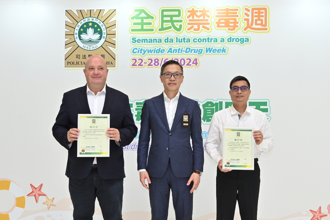 薛仲明局长致辞时表示,尽管近年本澳毒品犯罪保持低案发率,禁毒工作仍不能松懈,司警局坚持“重情报、强打击、宣禁毒、促技术"四大导向应对越趋多样化和复杂化的毒品犯罪形势,竭力维护社会秩序和市民安全。他指出,当前禁毒工作面临毒品大麻泛滥外溢风险加大、新型毒品不断向社会渗透、贩毒吸毒复杂化及隐蔽化的形势,全社会须共同合作,做好青少年禁毒宣传,以遏制毒品低龄化传播。司警局始终重视预防作为治理毒品犯罪的根本原则,持续优化禁毒宣教工作,推动大众关注毒品祸害,防微杜渐。此外,他鼓励市民持续留意和分享警方禁毒资讯,警民合力守好禁毒战线,携手实现“无毒社会"。