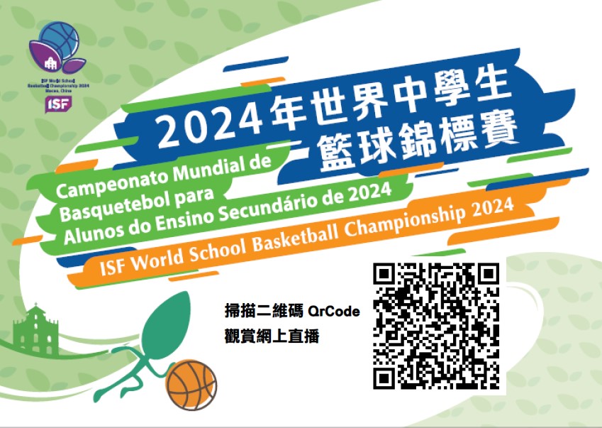 由国际中学生体育联合会主办,教育及青年发展局承办的2024年世界中学生篮球锦标赛(“世中篮”)于2024年6月24日在澳门揭幕,至今(29)日已顺利完成68场赛事,明(30)日开始进入八强赛事及排名赛事,分别于澳大综合体育馆及望厦体育中心上演。赛事免费入场,市民可到场或透过扫瞄二维码网上直播观看精彩赛事。
