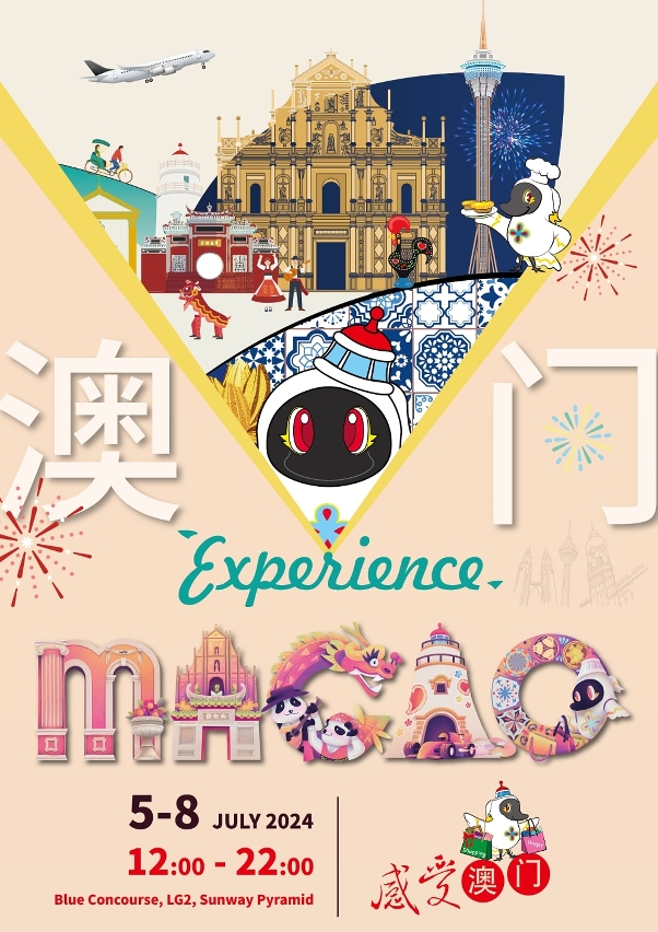 旅游局于去年重启国际客源市场的大型线下旅游推广活动,其中包括马来西亚,今年再度前往吉隆坡,一连四天(7月5日至8日)在人气畅旺的双威金字塔购物广场(Sunway Pyramid)LG2层Blue Concourse举办“感受澳门”马来西亚路展。该购物广场占地430万平方英尺,以埃及建筑风格设计,是马来西亚首座主题娱乐和购物广场。旅游局期望路展可接触更广的客群,从而吸引更多马来西亚居民选择亲身来澳体验“旅游+”元素。