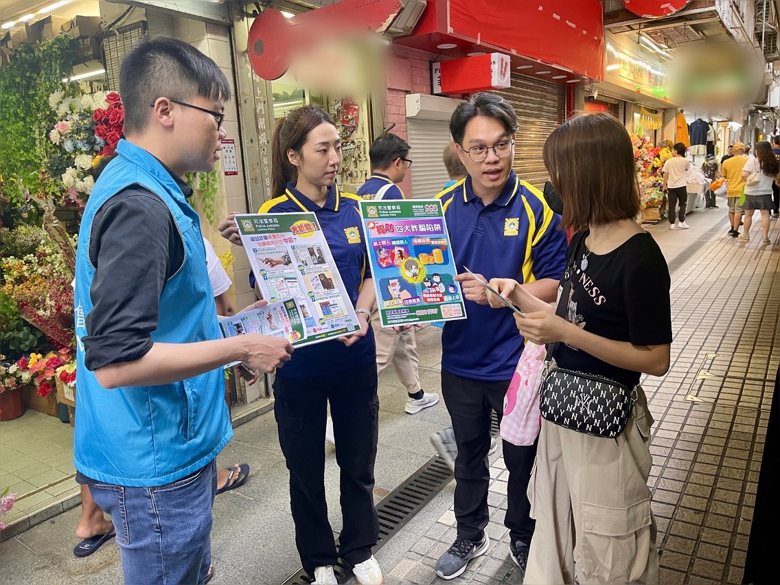 因应近期电讯诈骗案频发,为提高居民的防骗警惕,司警局人员向居民宣讲最新的防骗资讯,重点讲解近期再现的“猜猜我是谁”骗案手法,呼吁他们如接到陌生来电应保持警觉,切勿轻信陌生人自称的身份而答应对方要求,时刻紧记“拒绝”、“挂线”、“报案”防骗三原则。此外,还向居民推广司警局推出的“反诈程式”,介绍程式的各项功能,呼吁居民多利用当中的“诈骗搜寻器”功能协助分析可疑电话号码、电邮、银行帐户号码的诈骗风险指数,亦可从程式中瞭解电讯网络骗案最新手法和预防方法。