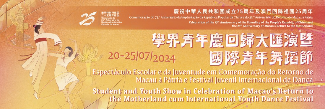 为庆祝中华人民共和国成立75周年及澳门回归祖国25周年,同时配合特区作为“一中心、一平台、一基地”的发展定位,由教育及青年发展局、澳娱综合度假股份有限公司及南光(集团)有限公司合办的“学界青年庆回归大汇演暨国际青年舞蹈节”将于2024年7月20日至25日举行。活动凝聚了社会各界的力量,由澳门学界师生联同世界各地青年合共近1,500位表演者,以及400多位志愿者参与,为大家带来精彩的巡游、快闪、户外和室内演出,欢迎全澳市民及游客观赏,一起感受青春的跃动与魅力。