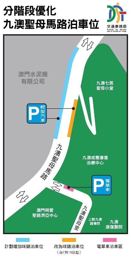 为回应对九澳康复医院及周边社会服务设施使用者的泊车需求,交通事务局经评估九澳圣母马路、九澳圣母里一带的交通条件及泊车现况,采取措施优化周边道路的停泊车辆安排。