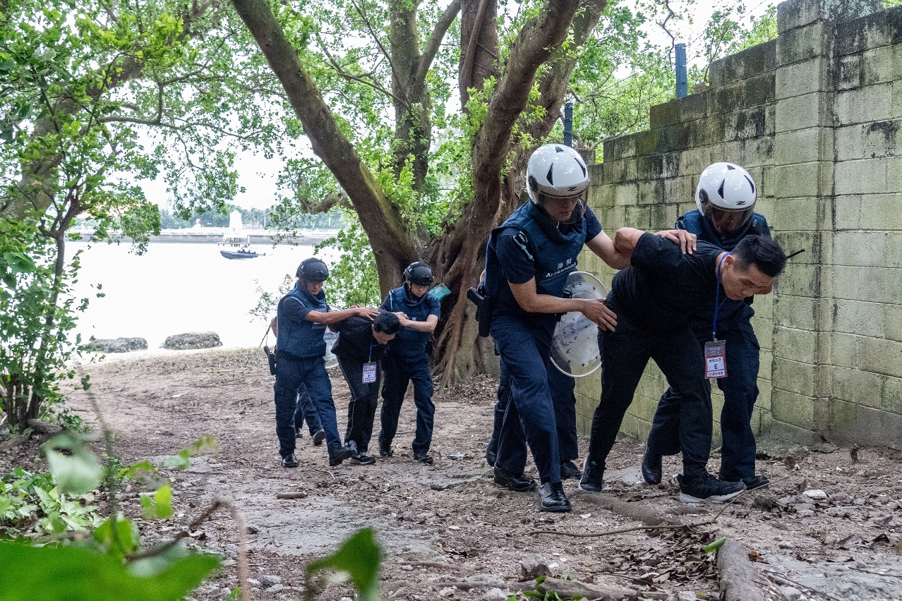 与此同时,澳门海关透过治安警察局提供的“天眼”资讯及无人机侦查,成功在路环石滩追截到2名在逃的恐怖份子,及后海关巡逻快艇亦在附近海域发现一首可疑快艇,经与特勤队快艇夹击拦截后,成功将驾驶快艇的第7名恐怖分子围捕归案。