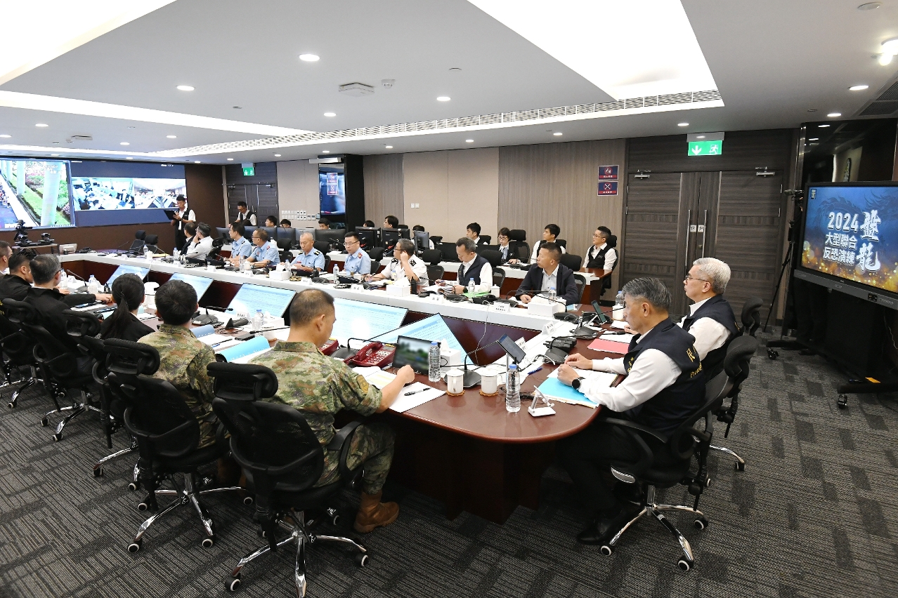 是次大型联合反恐演练顺利完成,达到预期效果。演练历时约2小时40分,共派出1038名人员参与,其中保安当局出动多支队伍,包括﹕海关无人机小队、巡逻船队和特勤队﹔治安警特别巡逻组、警犬组、爆炸品处理组及特别行动组﹔司警谈判小组、特别应变组、现场勘查组﹔消防局特勤救援队以及卫生局派出医疗队等,驻澳部队亦派出43名人员,主要负责危险品侦察、人员及场馆的洗消工作等。