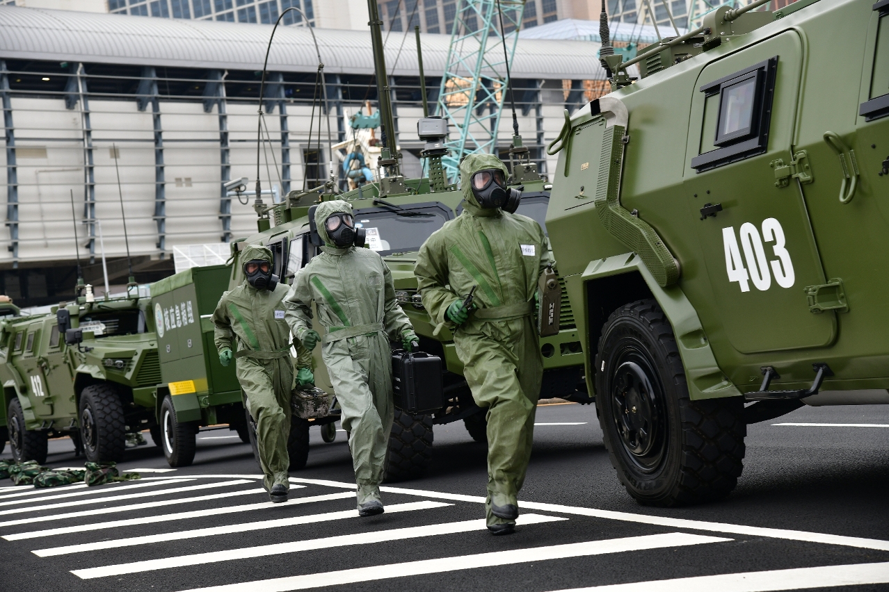恐怖分子于挟持人质期间,扬言持有化学武器,因挟持地点在室内,可能会出现大批受化学污染危害的群众或伤者,为尽快解决危机,经评估后,联合行动指挥官呈请行政长官根据《澳门特别行政区基本法》、《中华人民共和国澳门特别行政区驻军法》及第6/2005号法律《中国人民解放军驻澳门部队协助维持社会治安和救助灾害》,向中央政府提出请求驻澳部队到场协助洗消及相关救援工作。