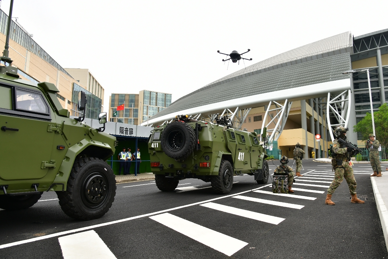 为加强警方与驻澳部队间应急处突、快速对接协作的机制,以及测试各部门前线单位应对反恐事件的通报和协作能力,警察总局联同中国人民解放军驻澳门部队(以下简称 “驻澳部队”),并协调澳门海关、治安警察局、司法警察局、消防局、卫生局、新闻局及体育局等多个部门及机构,于今(26日)下午3时在澳门路氹城区东亚运动会体育馆,进行了代号“盘龙”的大型联合反恐演练。