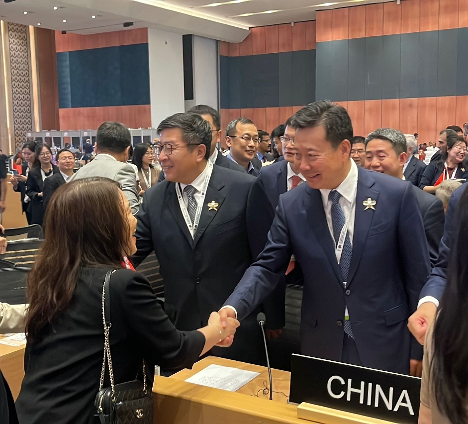 当地时间7月26及27日上午,国家所有申报项目均顺利通过审议,并成功列入《世界遗产名录》,社文司代表于大会现场见证了申遗成功并上前表示祝贺。
